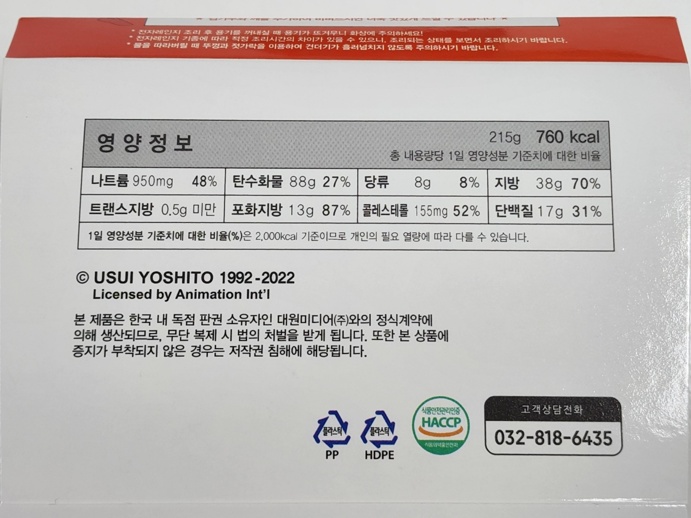 영양 정보 : 열량 760 kcal / 나트륨 950 mg