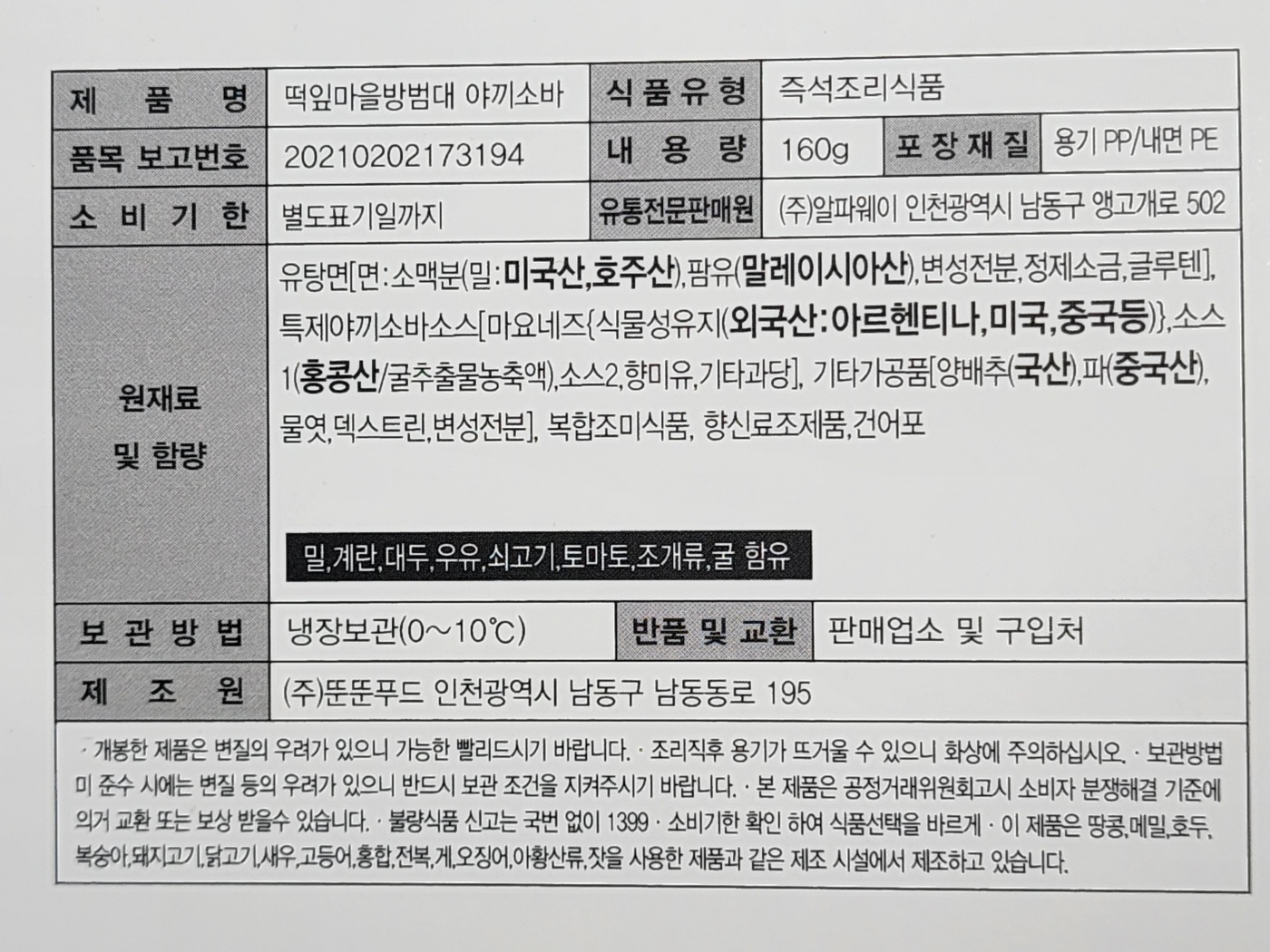 그런데 정작 이 제품에는 '메밀'이 전혀 들어가 있지 않습니다!!!! 그럼 이름을 굳이 야끼소바 라고 붙인 이유가?!?