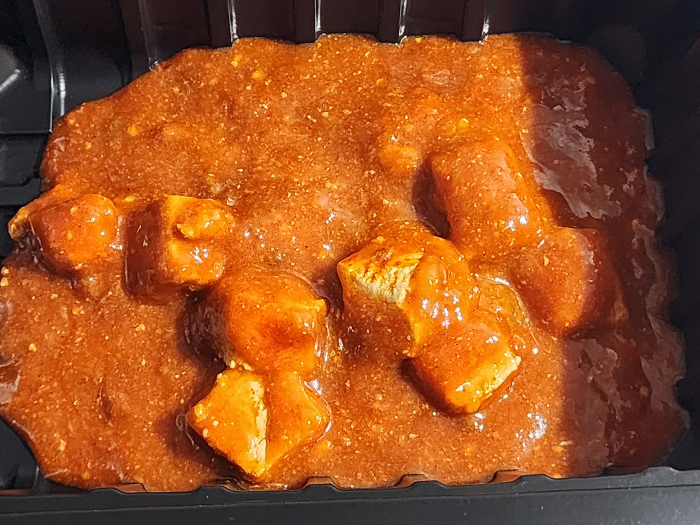 제품 커버 사진과 실제 마파두부 덮밥소스 비주얼을 비교하기 위해 사진을 찍었습니다. 두부의 양에 차이가 있긴 한데, 비주얼이 썩 나쁘진 않습니다. 우렁강된장이라고 사기 치고 우렁이는 어디로 갔는지 영문을 모르겠는 제품보다는 낫습니다.