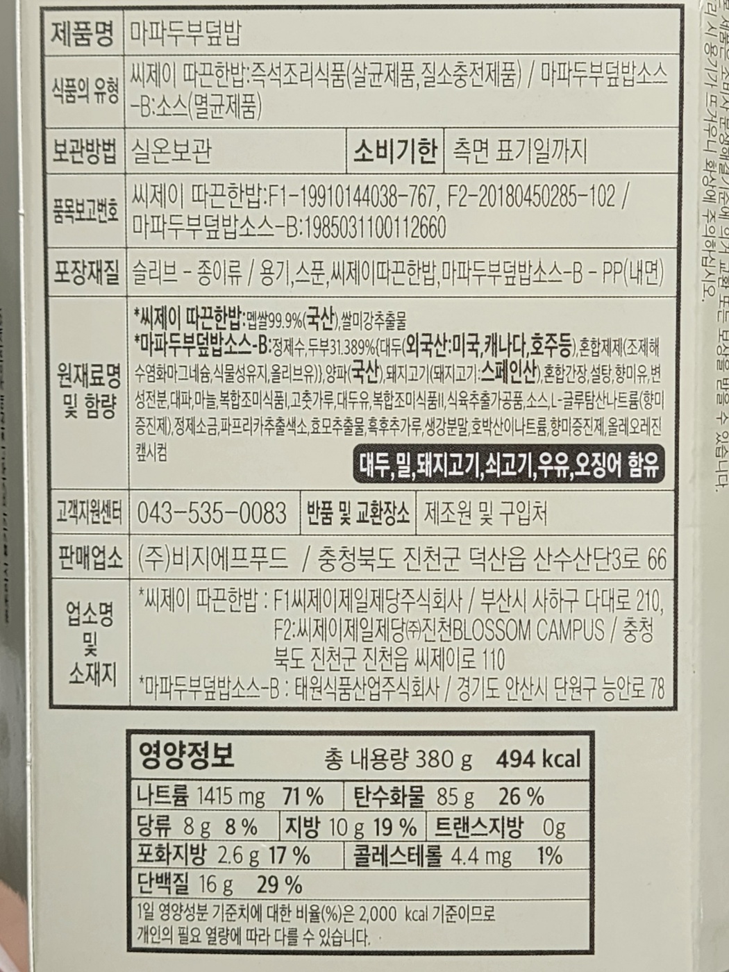 지금까지 CU에서 구매한 마파두부 덮밥 제품 리뷰였습니다.