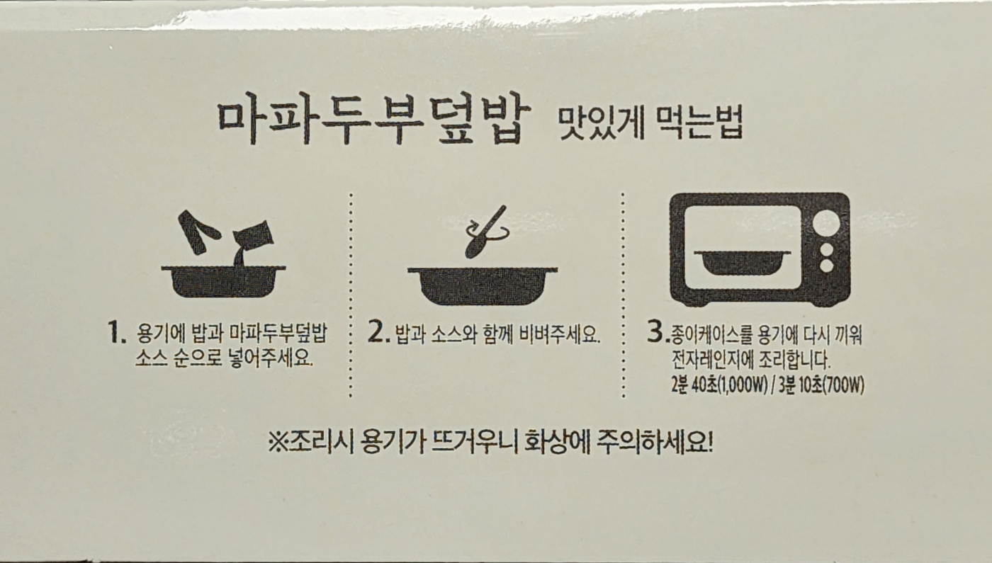 일전에 리뷰한 적 있는 불고기 계란 덮밥과 동일한 라인업인 마파두부 덮밥을 시식해 보았습니다.