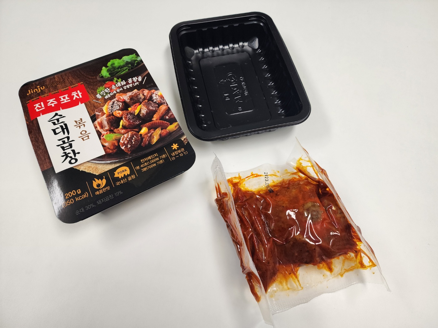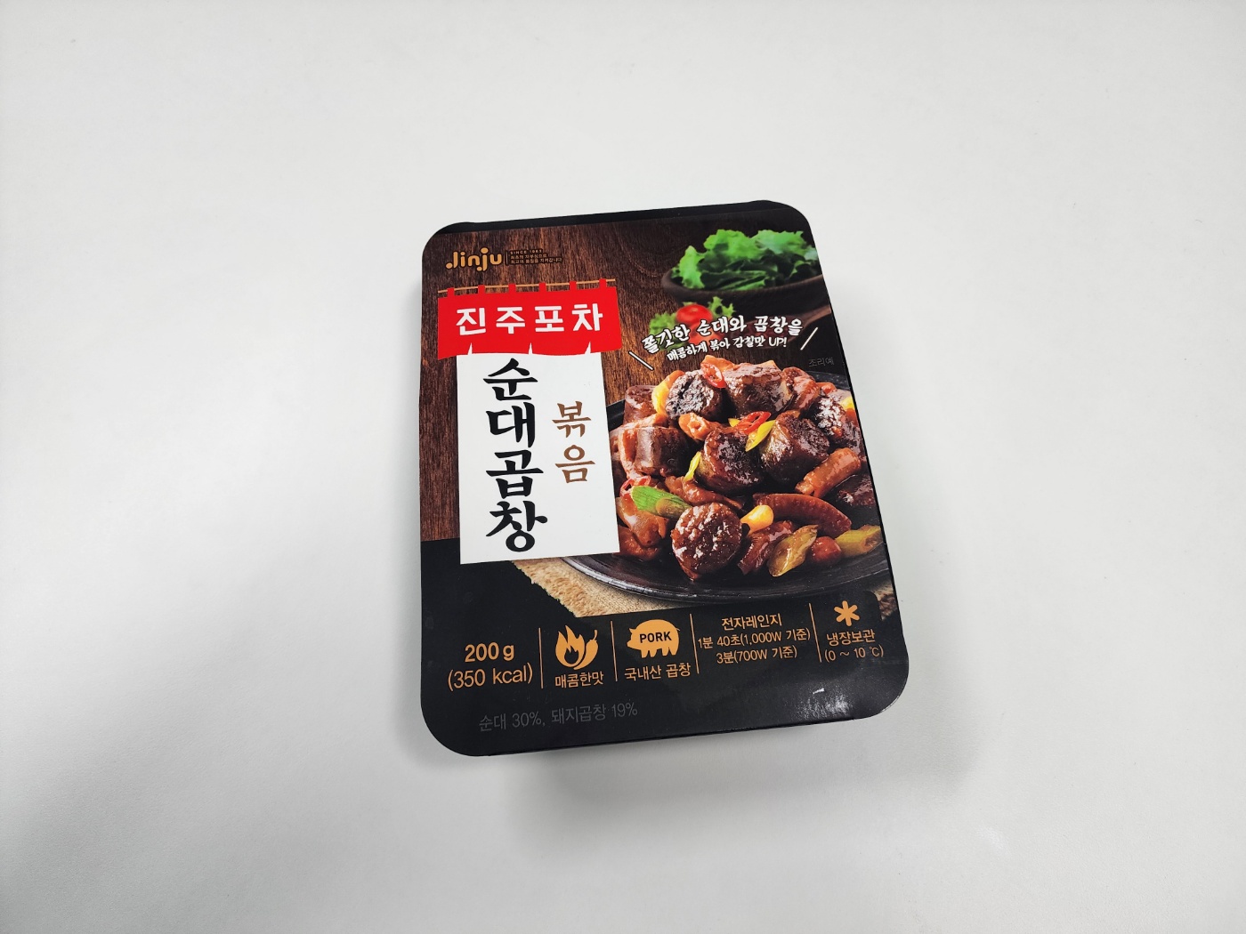 모처럼 미니스톱에 들러봤는데, 손이 가는 제품이 없었습니다. 한 번씩 다 먹어본 레토르트 제품들이었어요. 고민하다가 고른 제품이 진주포차 순대곱창볶음이었습니다.