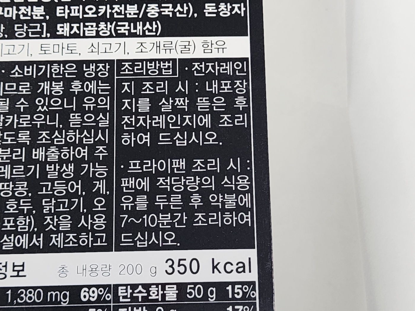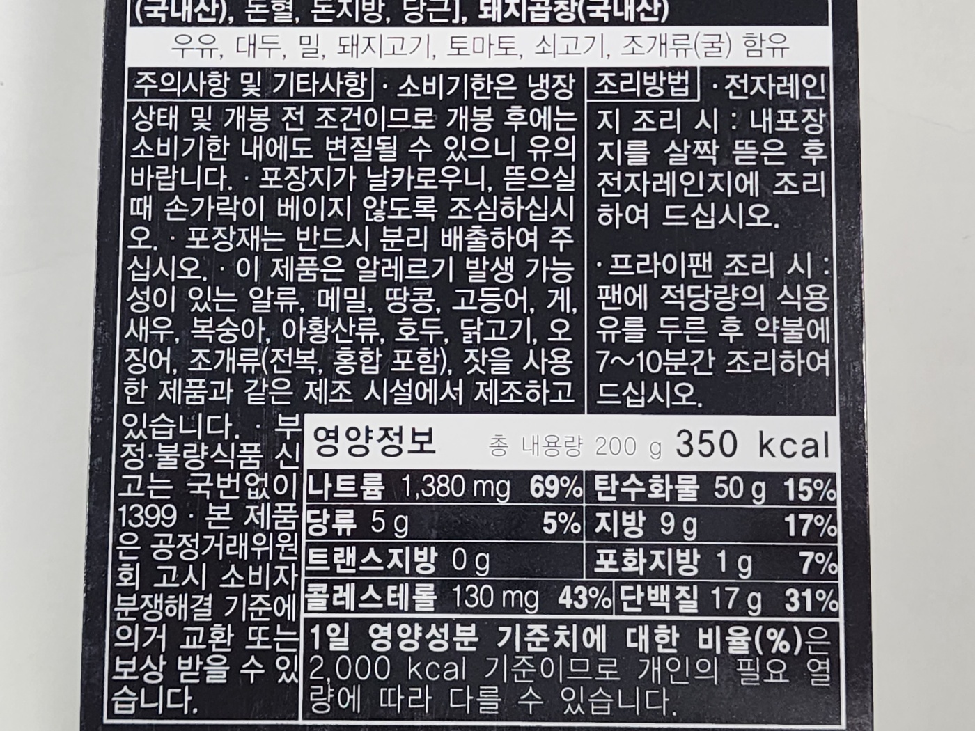조리 방법은 불친절한 편입니다. 진공포장 비닐 소재가 폴리에틸렌인데, 전자레인지에 그대로 조리해도 되는 건지, 안내 문구라도 좀 넣어주면 좋았을 텐데요.