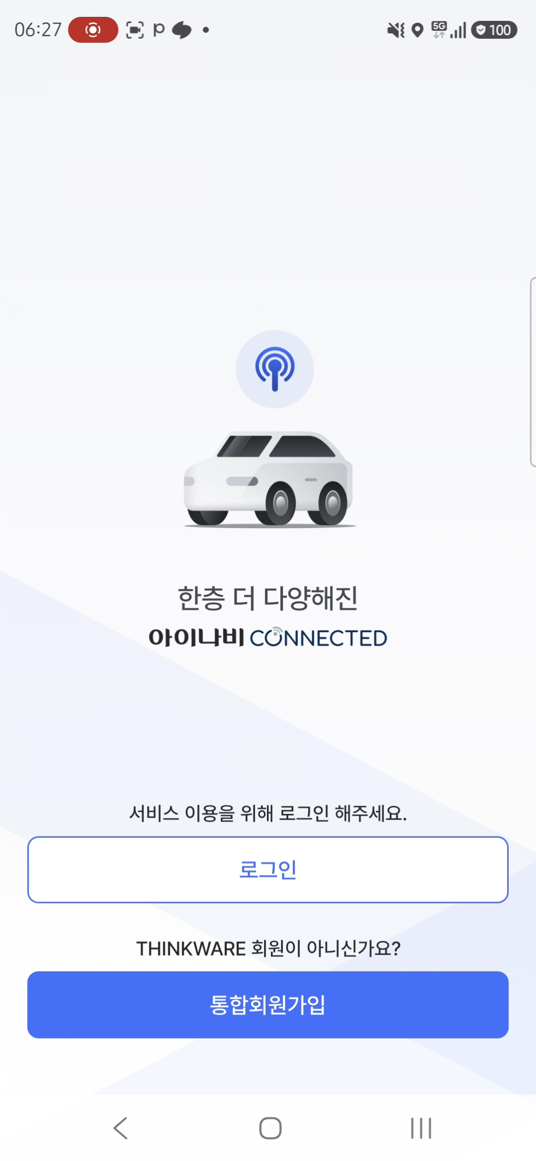 갤럭시 S26 울트라로 바꾸고 아이나비 Connected 앱을 실행했더니 로그아웃 된 상태였습니다. 당연한 건데...
