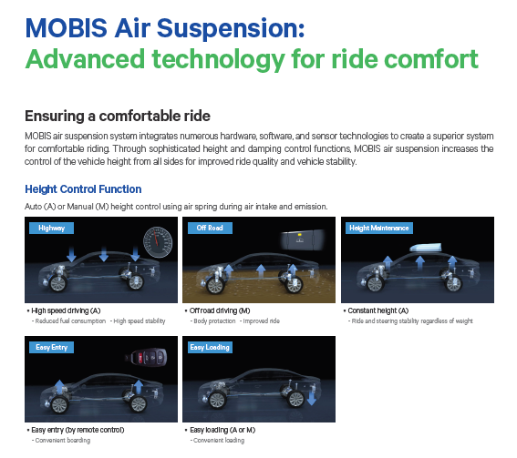 모비스의 전자제어 서스펜션 소개를 봐도 네비게이션 정보를 기반으로 도로의 종류(고속도로/일반도로)를 파악해 서스펜션 세팅값에 반영하고 실제 도로의 요철 수준이 네비게이션 정보와 확연히 다르다고 판단될 경우 세팅 값을 변경한다고 나와 있을 뿐, 프리뷰가 아닌 일반 전자제어 서스펜션이 과속방지턱 같은 일시적이고 돌발적인 도로상황에 대응한다는 건....
